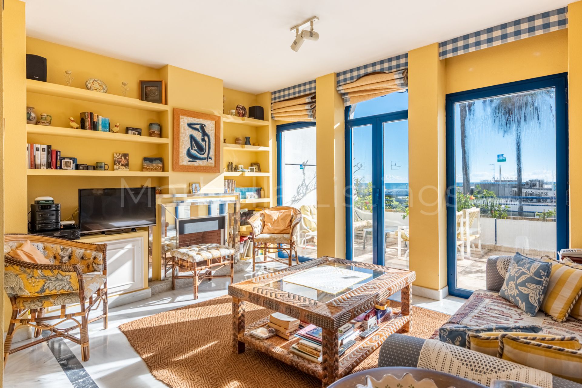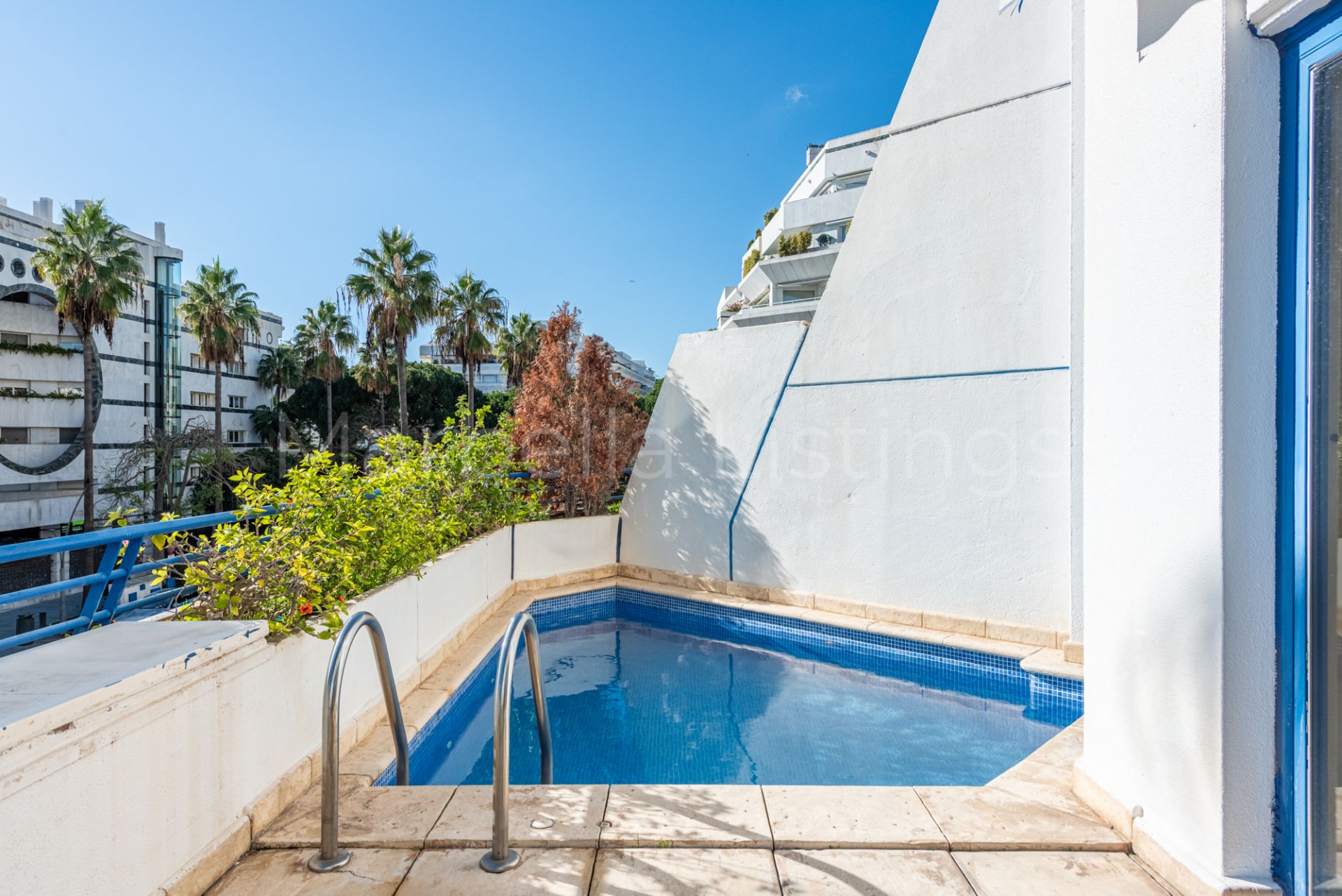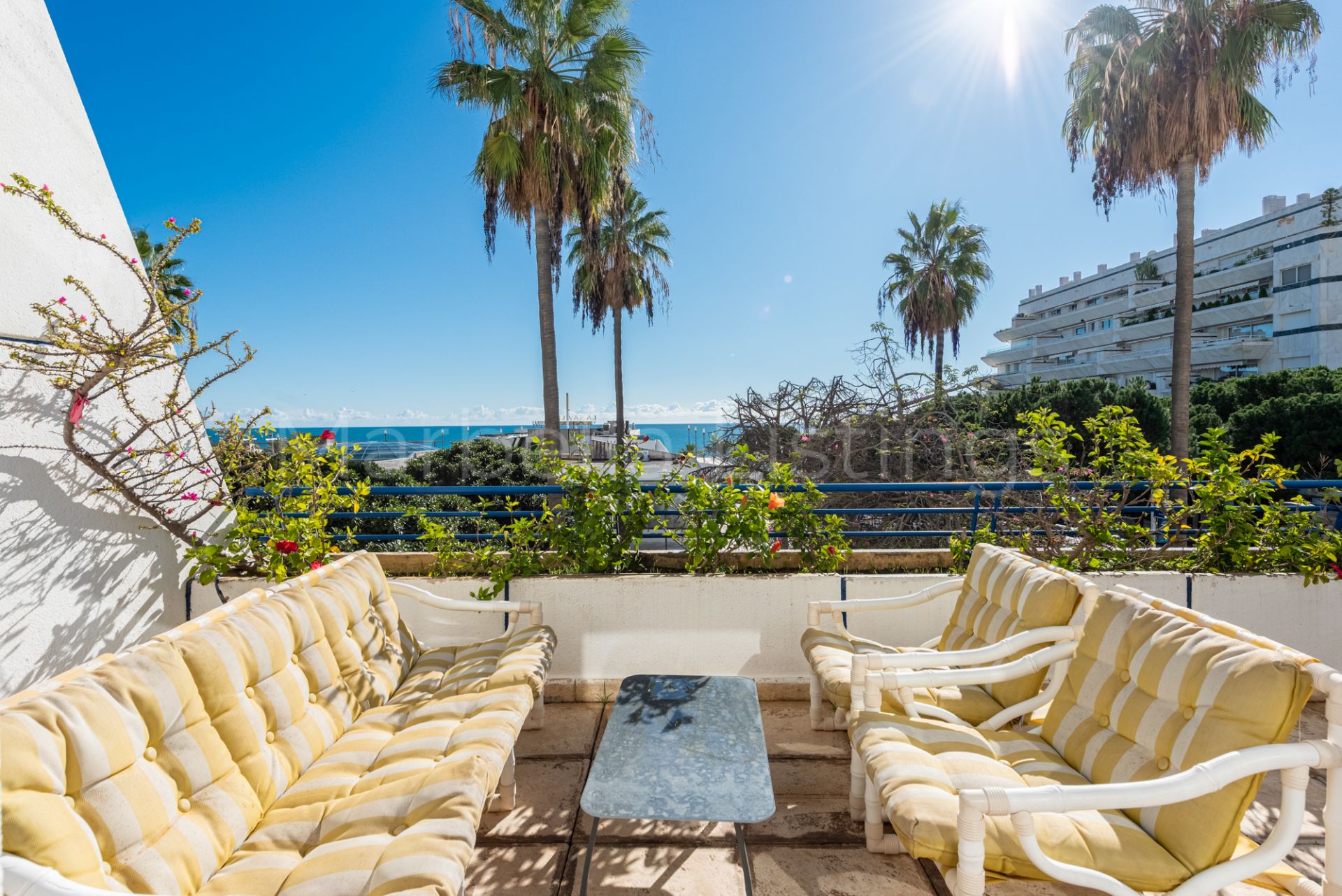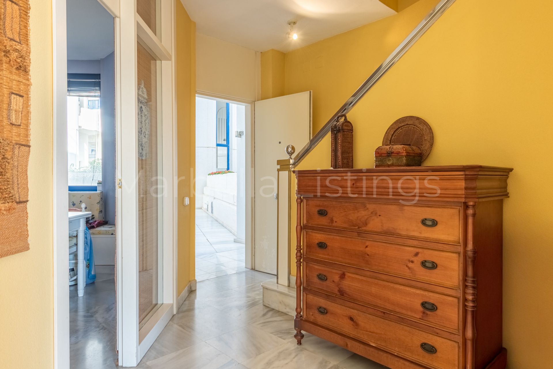 This south-facing 3-bedroom duplex apartment is located in Marbella House, one of the established and well positioned residential complexes on Marbella’s Golden Mile. Set just behind the beachfront and a short walk from the promenade and Playa de la Fontanilla, Marbella House offers a rare balance between central living and a quiet, well-maintained residential environment.