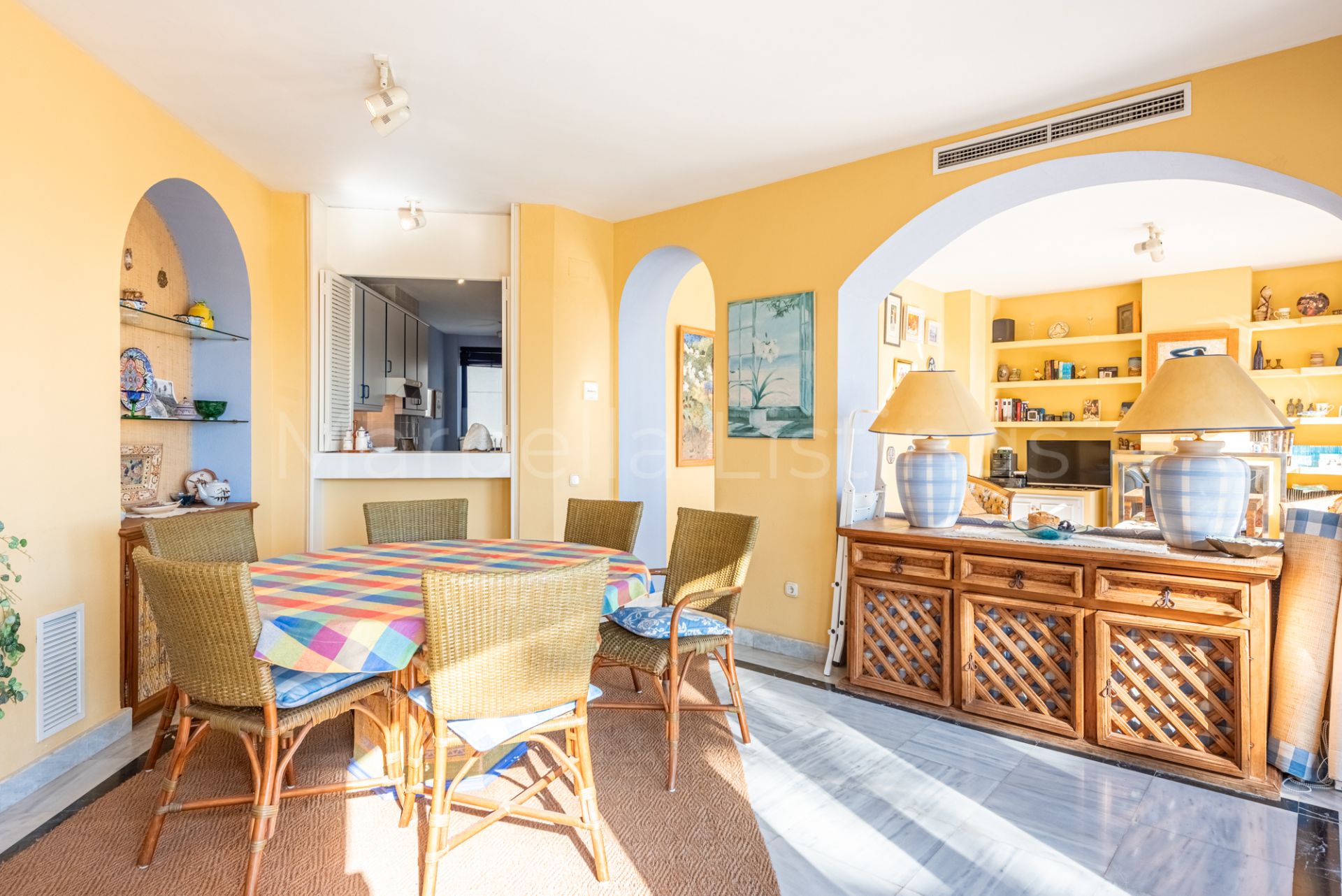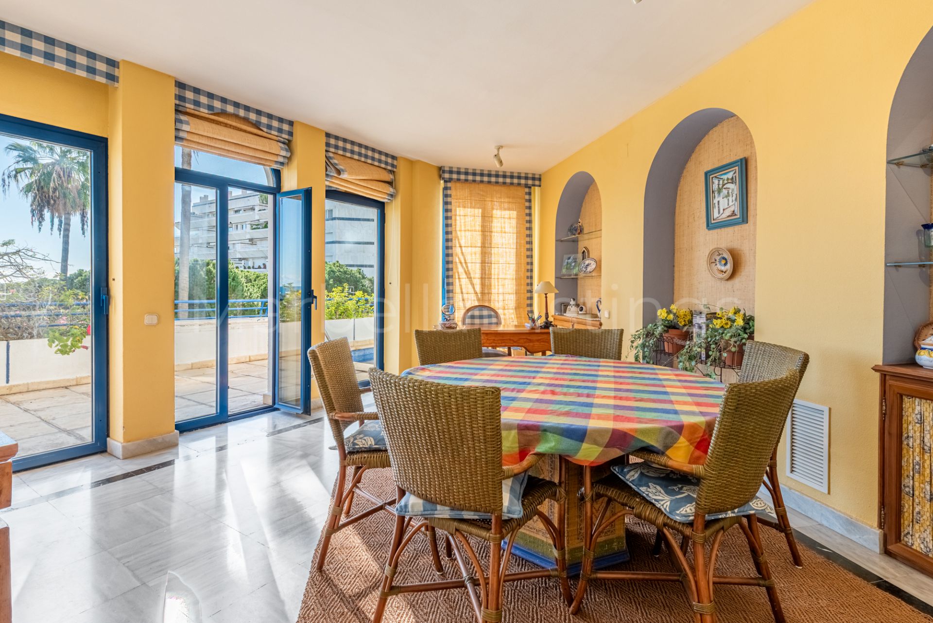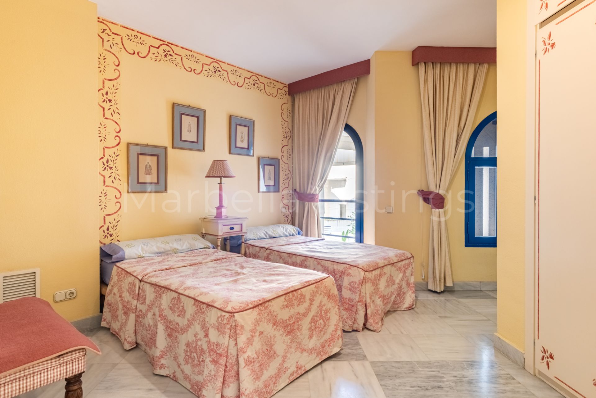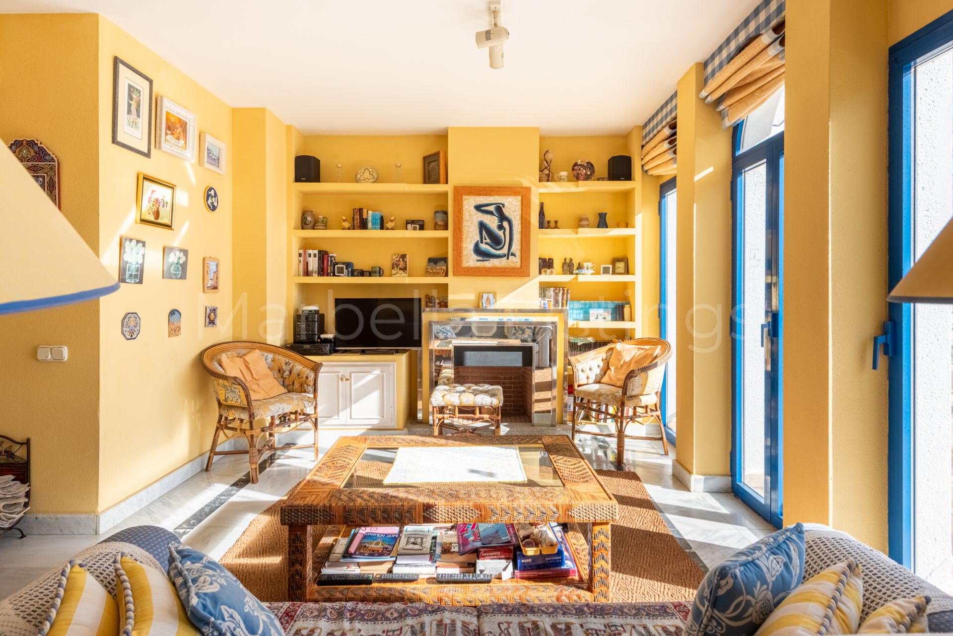 This south-facing 3-bedroom duplex apartment is located in Marbella House, one of the established and well positioned residential complexes on Marbella’s Golden Mile. Set just behind the beachfront and a short walk from the promenade and Playa de la Fontanilla, Marbella House offers a rare balance between central living and a quiet, well-maintained residential environment.