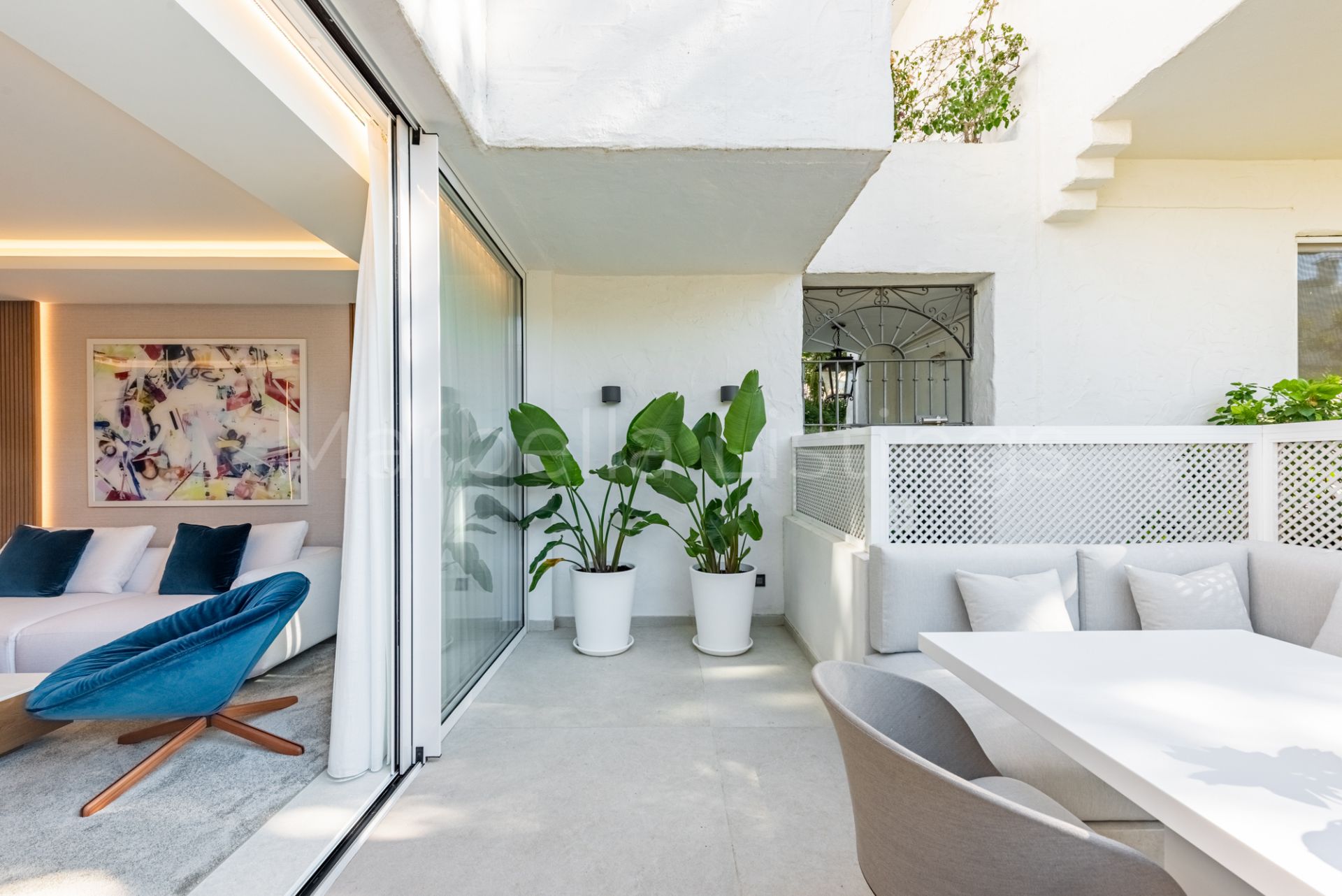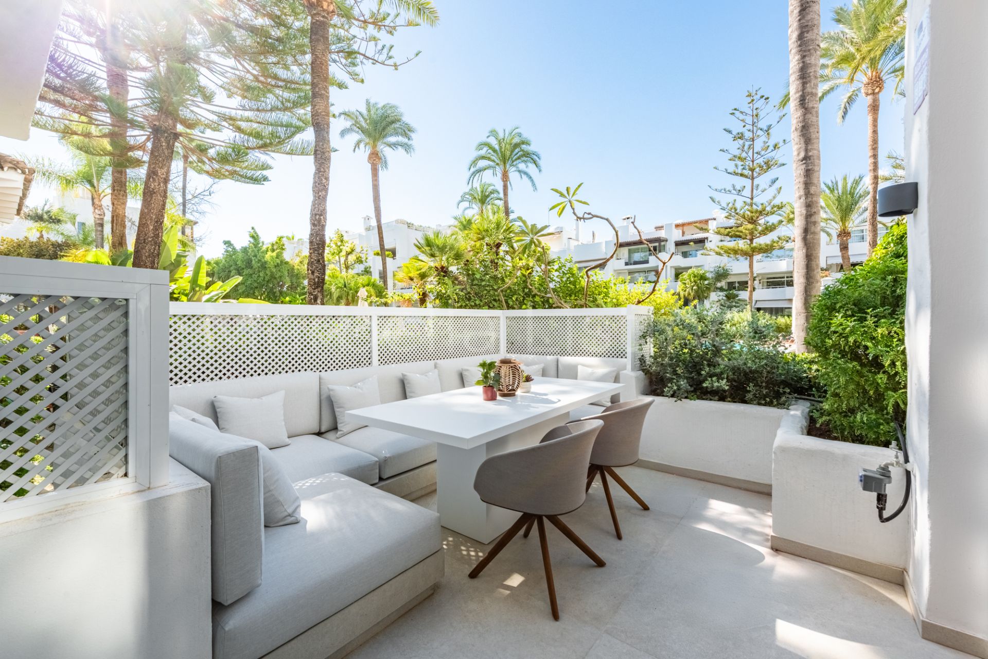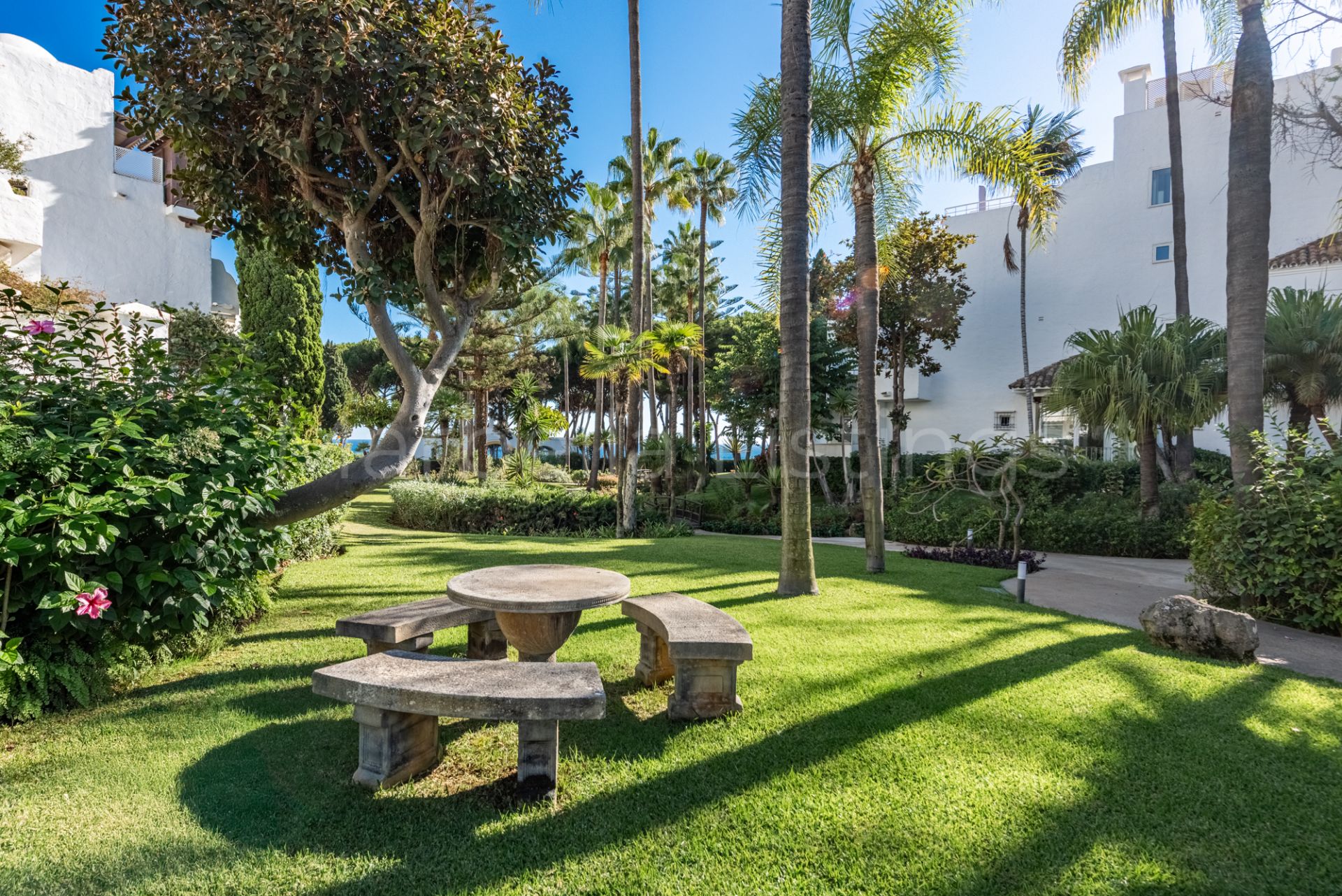 This recently reformed ground floor apartment is situated in Alhambra del Mar, one of Marbella’s most sought-after beachfront communities. Its location is unbeatable, approximately 150m from the sea and the promenade, where you’ll find lively beach bars, restaurants, and chiringuitos. Marbella old town is within approximately 3kms away. The community offers beautiful tropical gardens and a communal swimming pool, ideal for relaxing and enjoying the outdoors.