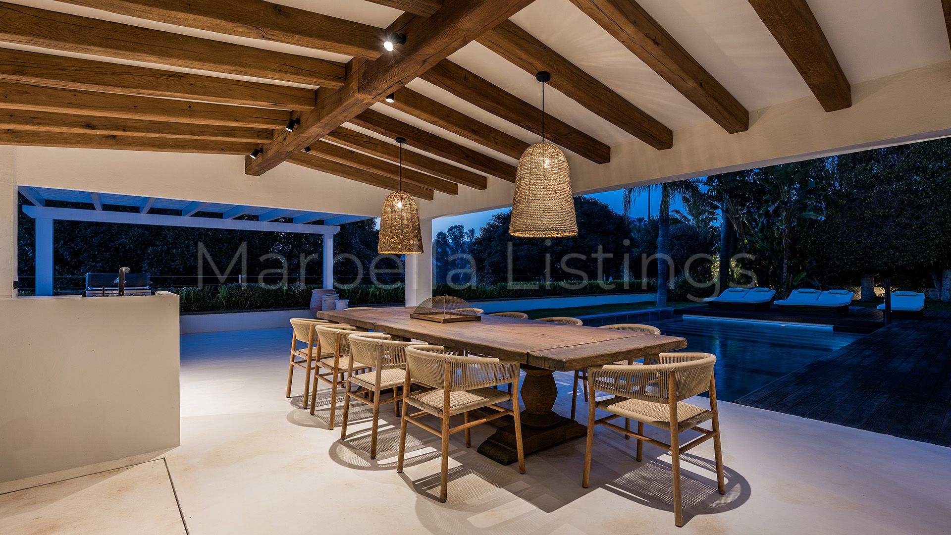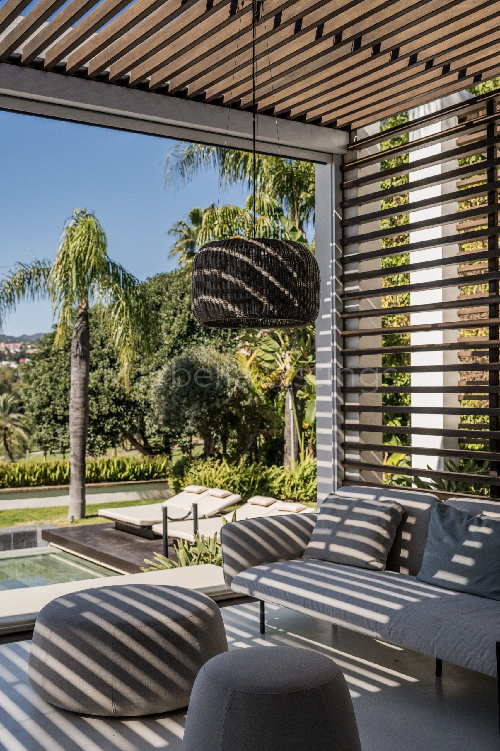 Villa Nazari is designed to make the most of the views from every corner, with large windows that are hidden in the walls, creating a perfect connection between indoors and outdoors. The outdoor spaces are simply spectacular, with a heated infinity pool, a wooden solarium extending out onto the terrace, a pergola protecting an outdoor kitchen with barbecue and a Jacuzzi perfect for relaxing under the stars.