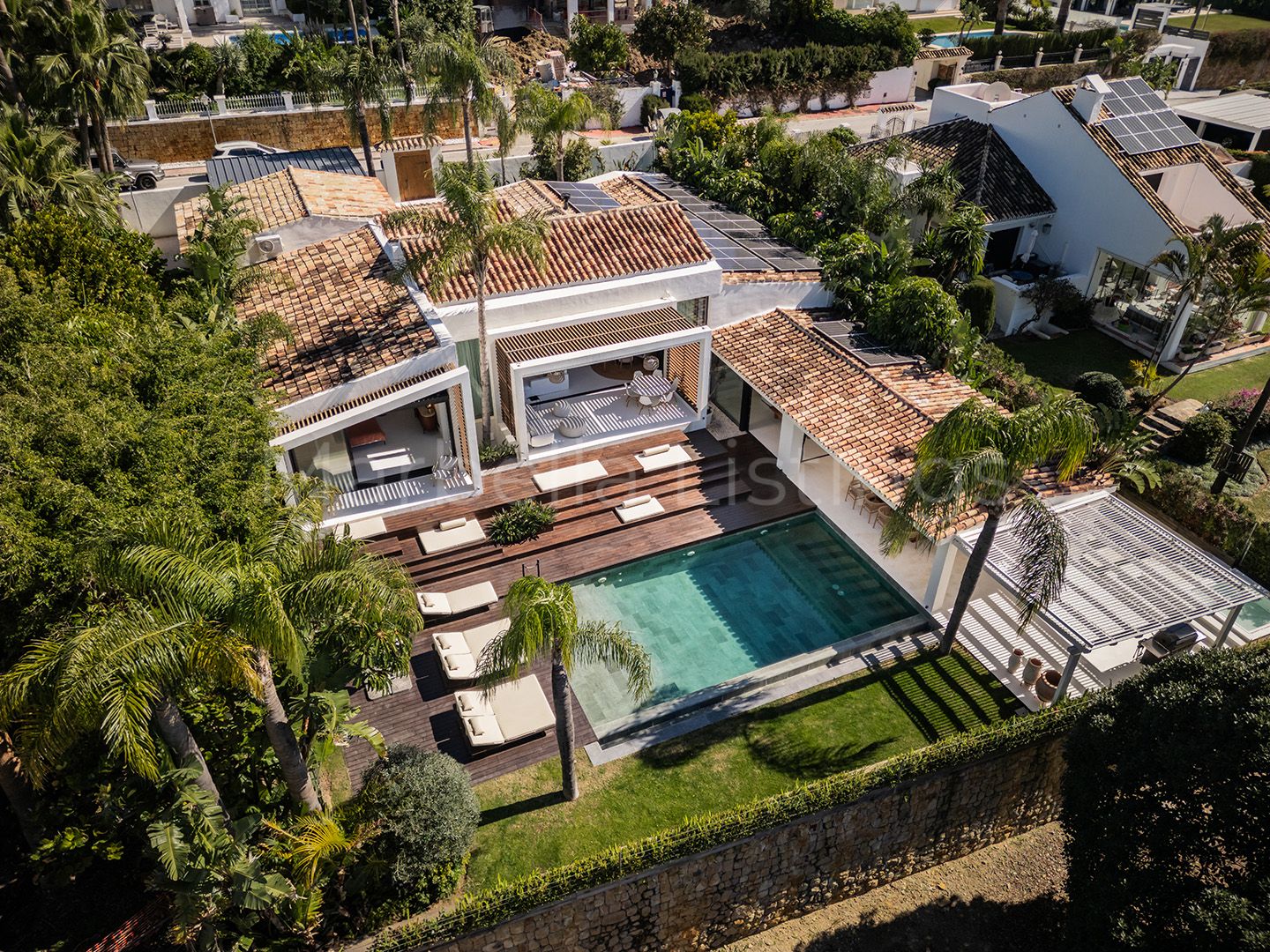The villa is equipped with the latest technologies, including a home automation system, solar panels, heated pool and aerothermal technology for efficient and sustainable climate control, and a pre-installation for electric car chargers. All this, combined with its proximity to essential services and schools, makes it the perfect choice for those seeking a life of luxury, comfort and security on the Costa del Sol.