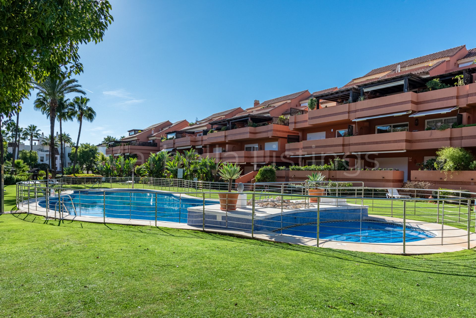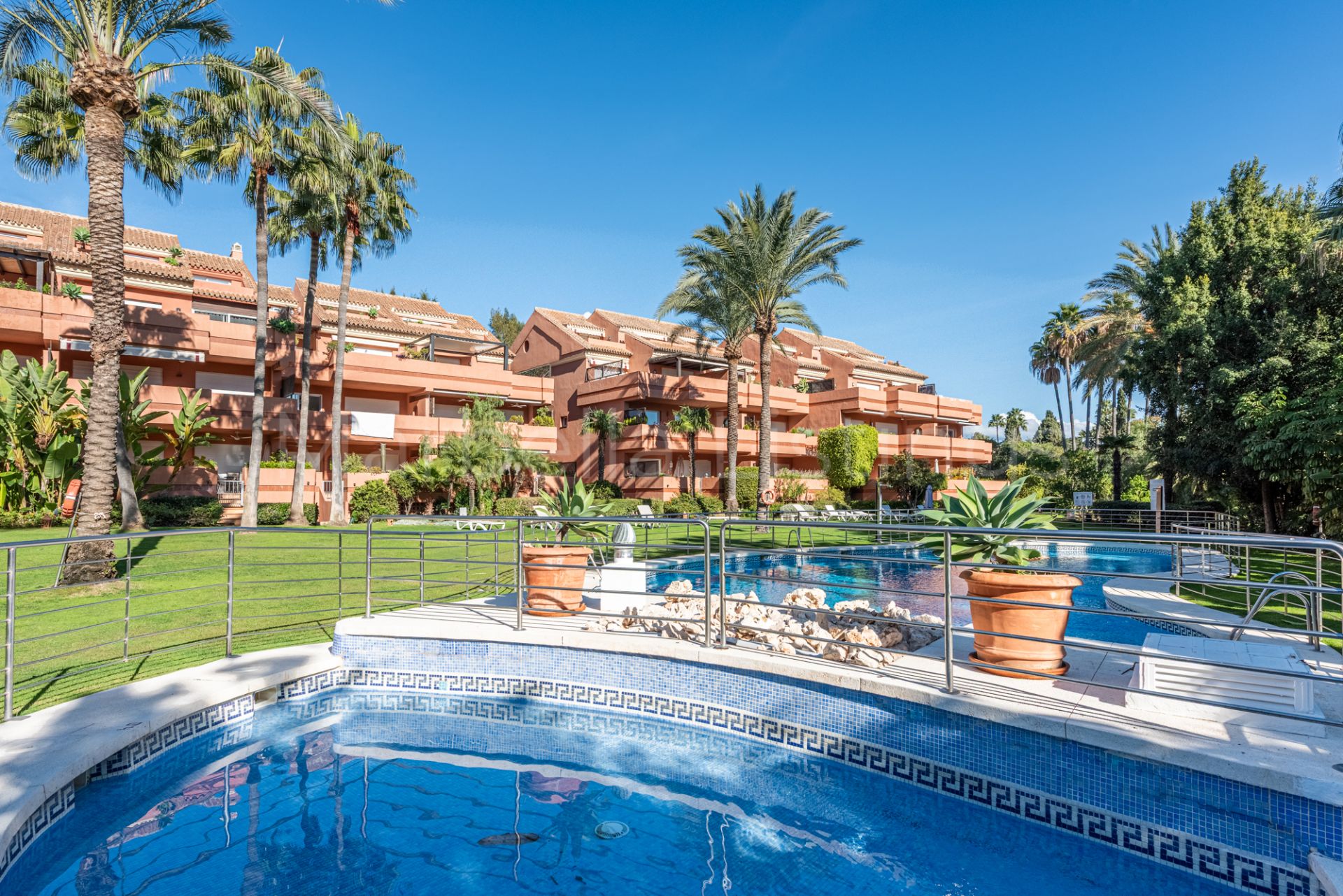 El Embrujo Playa offers 24-hour security, extensive gardens, and two swimming pools. The property includes two underground parking spaces and a storage room.