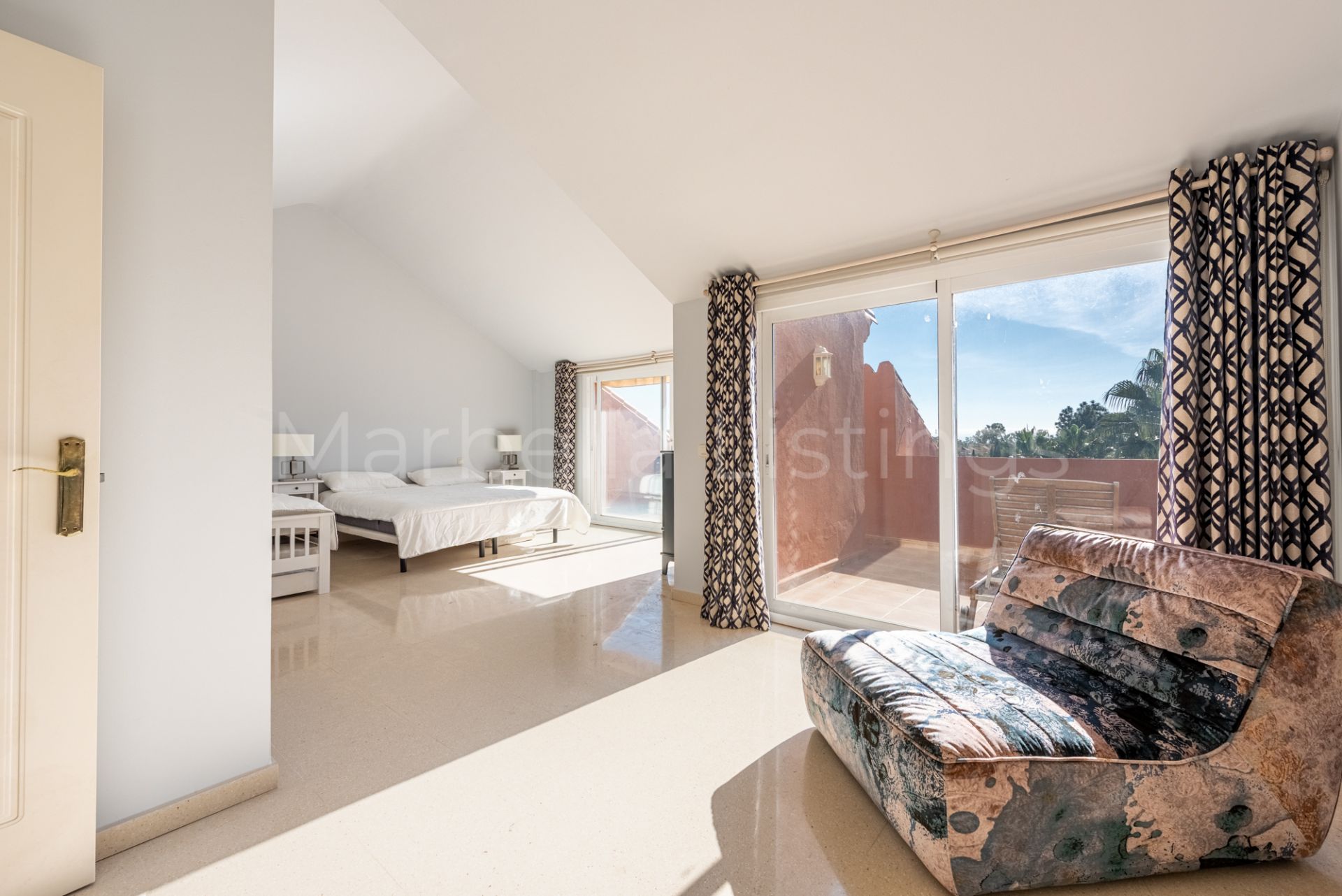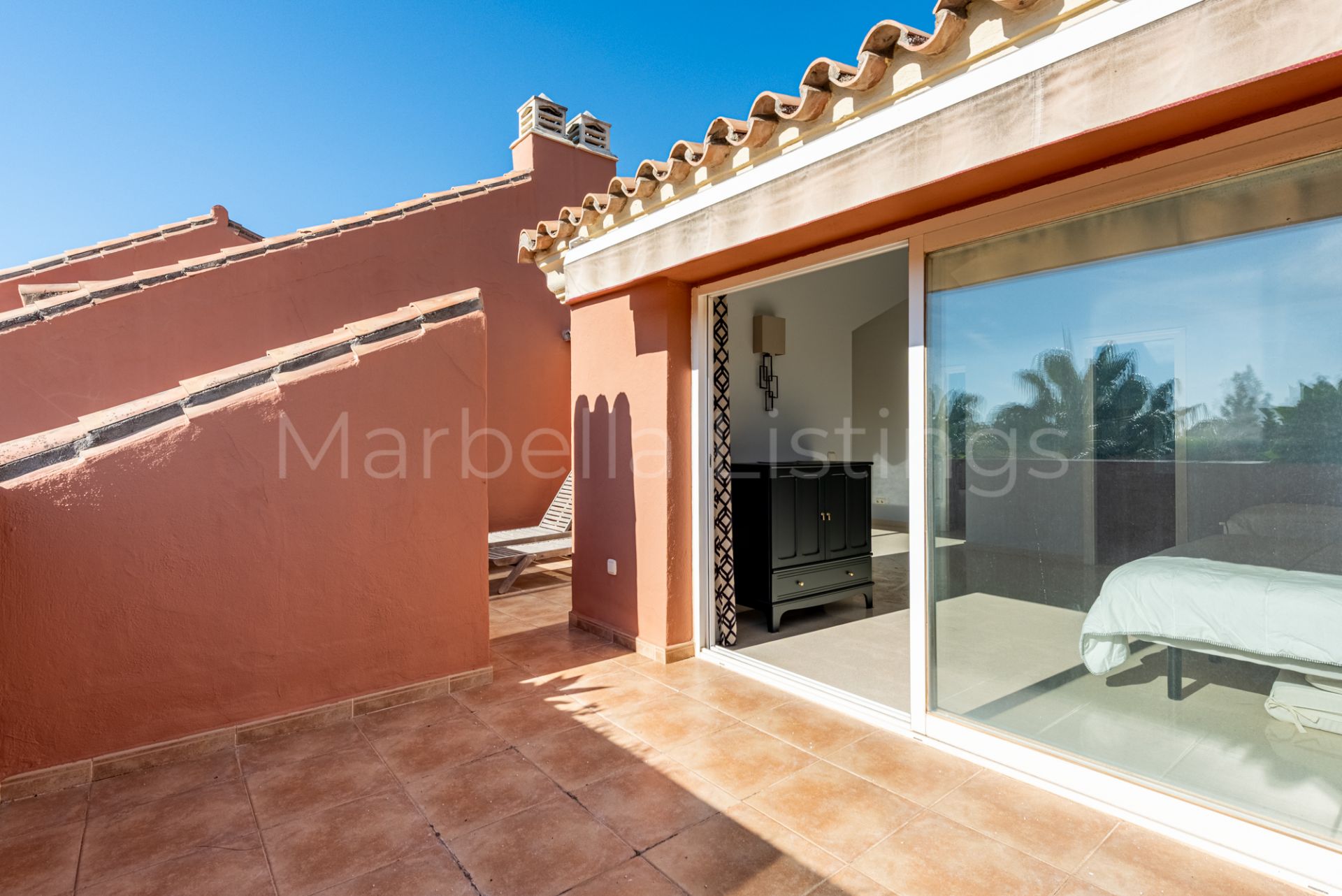 The upper level is dedicated to the master suite, complete with an en-suite bathroom and a private terrace ideal for relaxing and enjoying the surroundings.