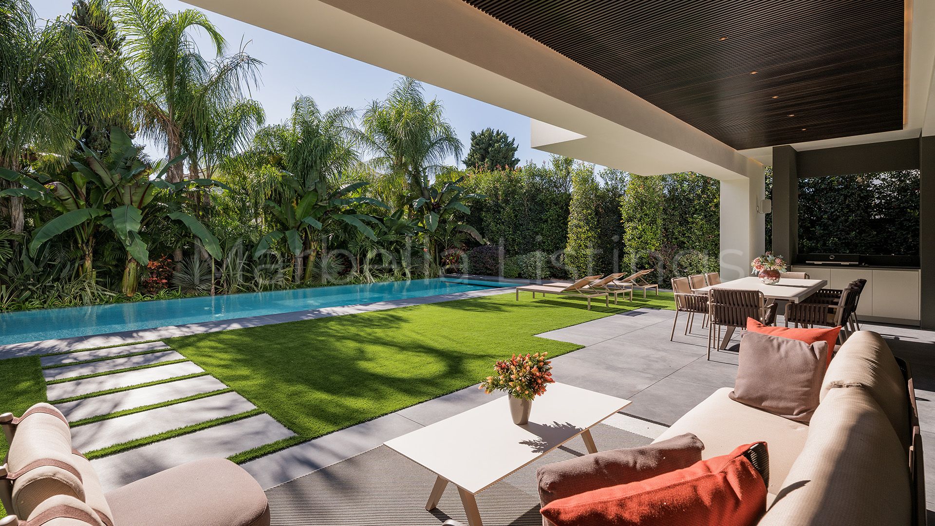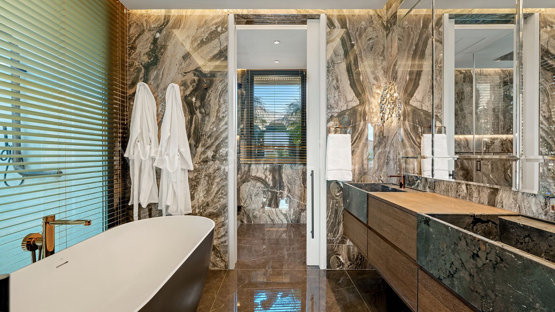 Villa Corso is located in the sought-after Casablanca development on Marbella’s Golden Mile, this exceptional villa is just 300 metres from the beach, the Marbella Club and the promenade. The old town is about 2 km away, Puerto Banús less than 5 km, and several golf courses and top-notch services can be found within a 10-minute drive.