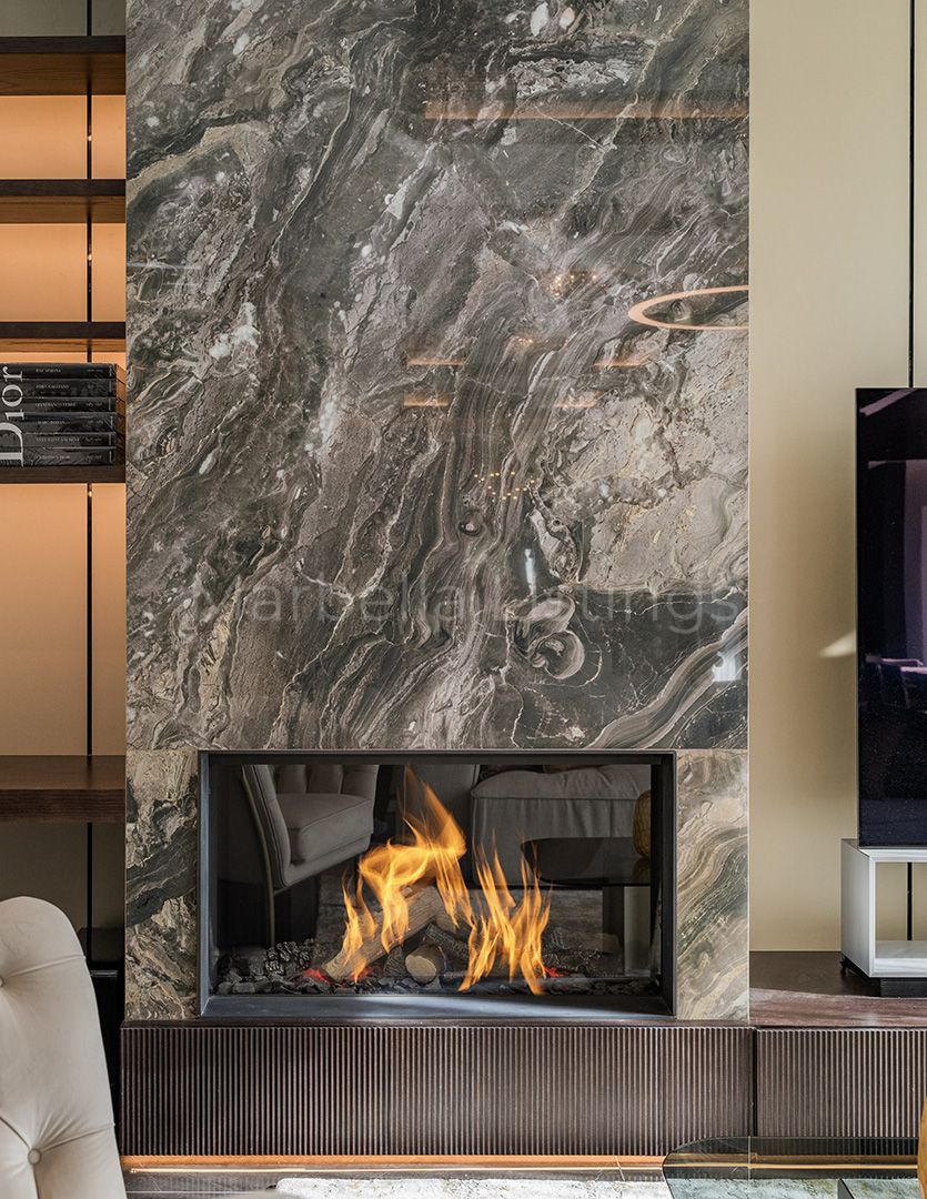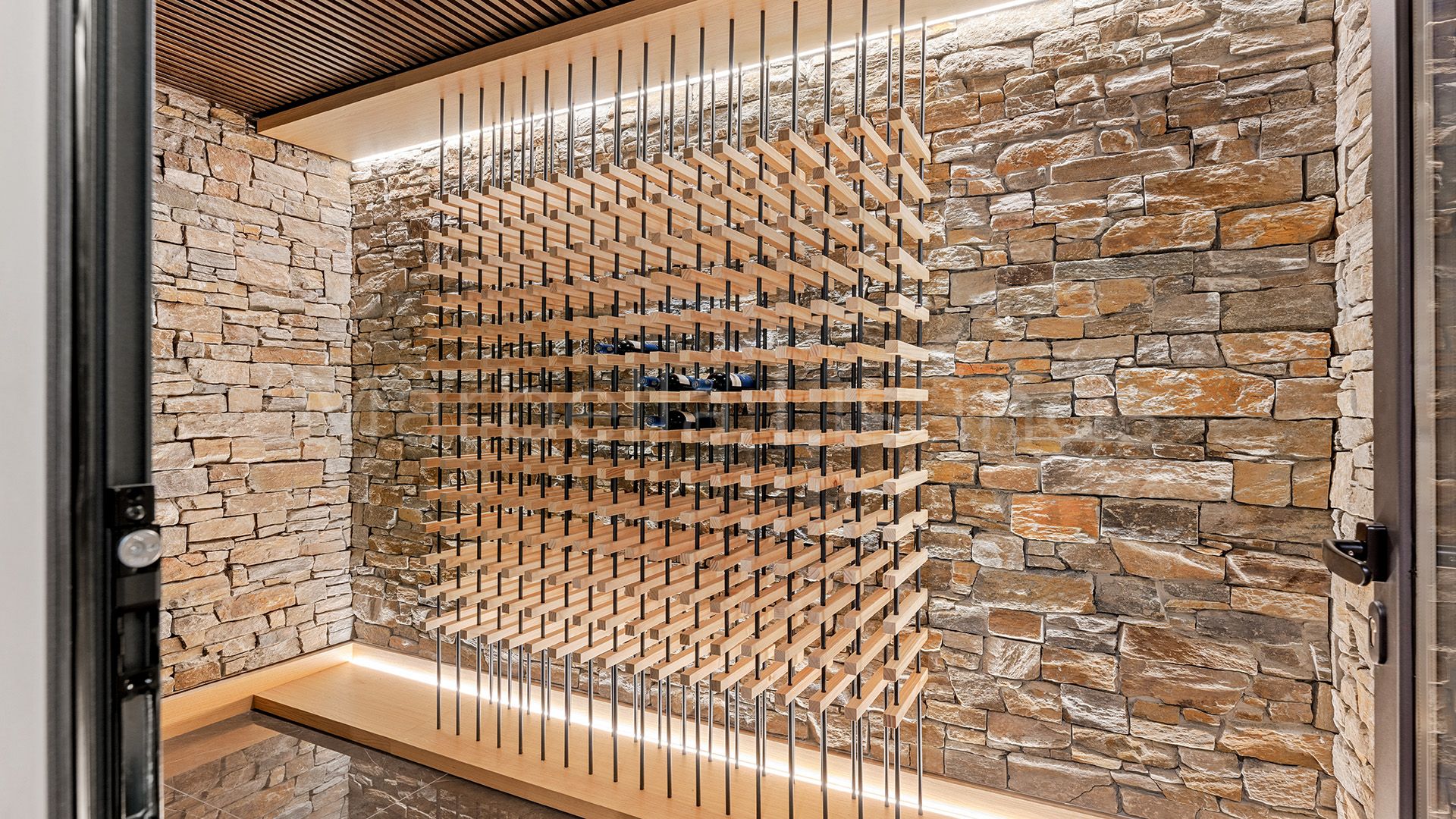 The interior combines fine materials and modern innovations: Murano lamps, solid brass handles and crafted mouldings coexist with a comprehensive home automation system that manages lighting, security and a turntable in the garage, all from an app.