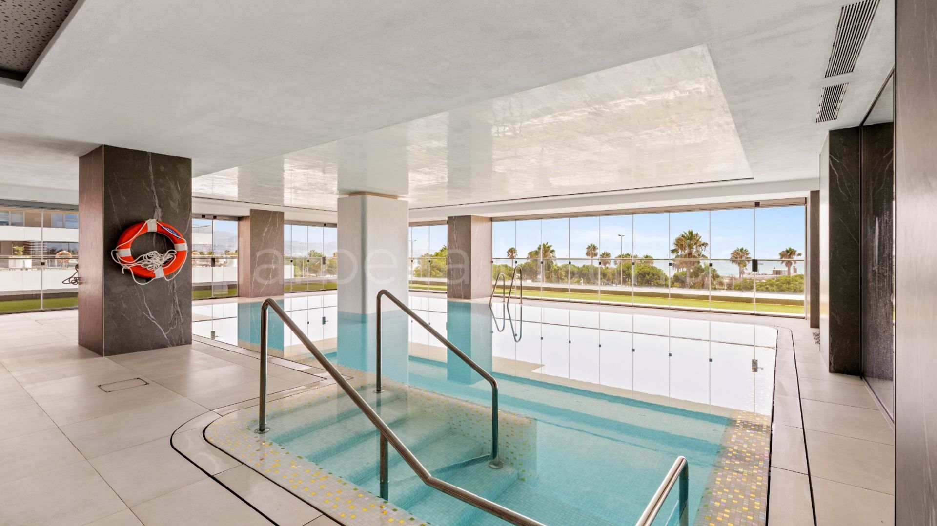 The apartment is sold with two garage spaces and a large storage room. Residents also benefit from access to first-class amenities that bring five-star hotel standards to everyday living: rooftop infinity pool with panoramic views and pool bar, wellness spa with sauna, hammam, sensory showers, indoor pool and ice fountain, fully equipped gym overlooking the sea, private cinema, coworking lounge, kids’ playroom, 24h security and on-site medical room, exclusive app for residents to manage services. Fire safety system with automatic fire doors on each floor — a first in Spanish residential buildings